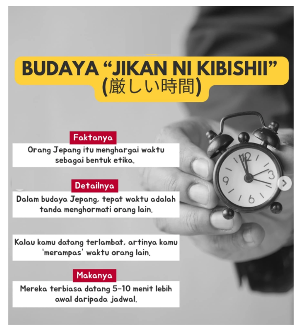 Salah satu hal yang paling dikagumi dari Jepang adalah ketepatan waktu. Kereta cepat Shinkansen nyaris tidak pernah terlambat, bahkan hanya hitungan detik. Di balik itu ada pesan penting: menghargai waktu berarti menghargai diri sendiri dan orang lain.